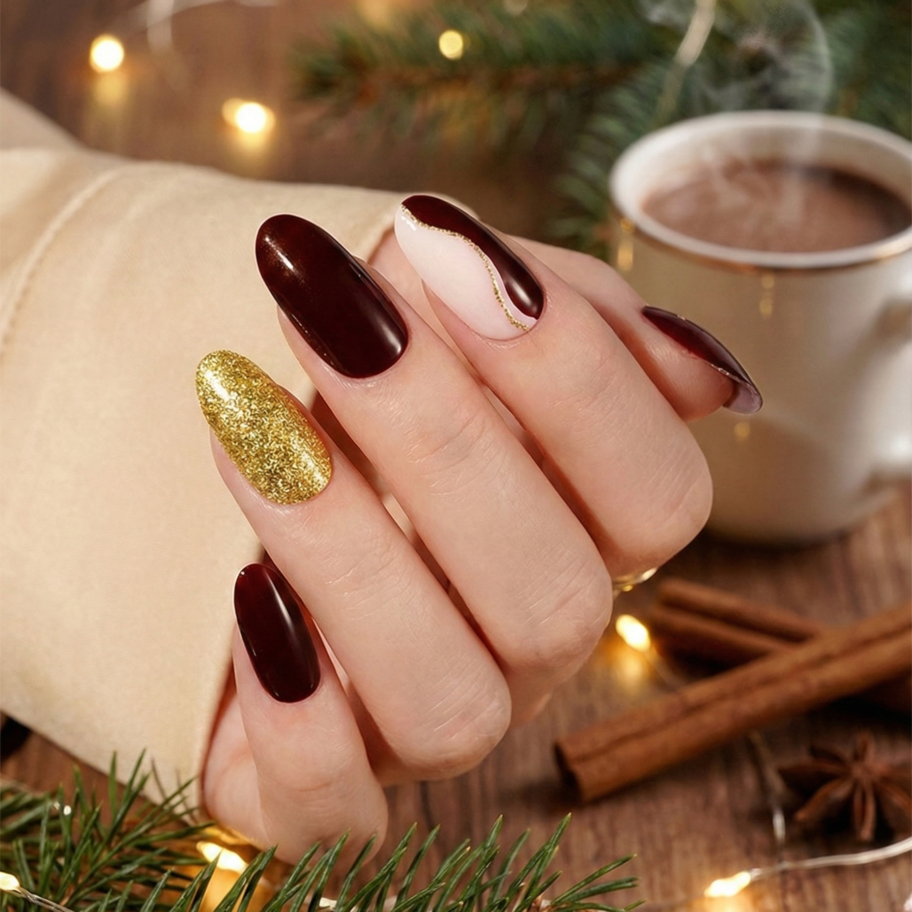 Une manucure chaleureuse et raffinée, inspirée des teintes dorées de la saison.
