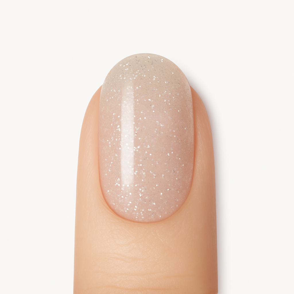 Sa base transparente, illuminée de fines paillettes, apporte une brillance délicate sans jamais en faire trop.