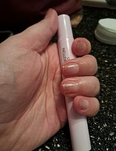 Il vous suffit d’utiliser le bâtonnet en bois ainsi que le stylo GlossyyNails huile de retrait.